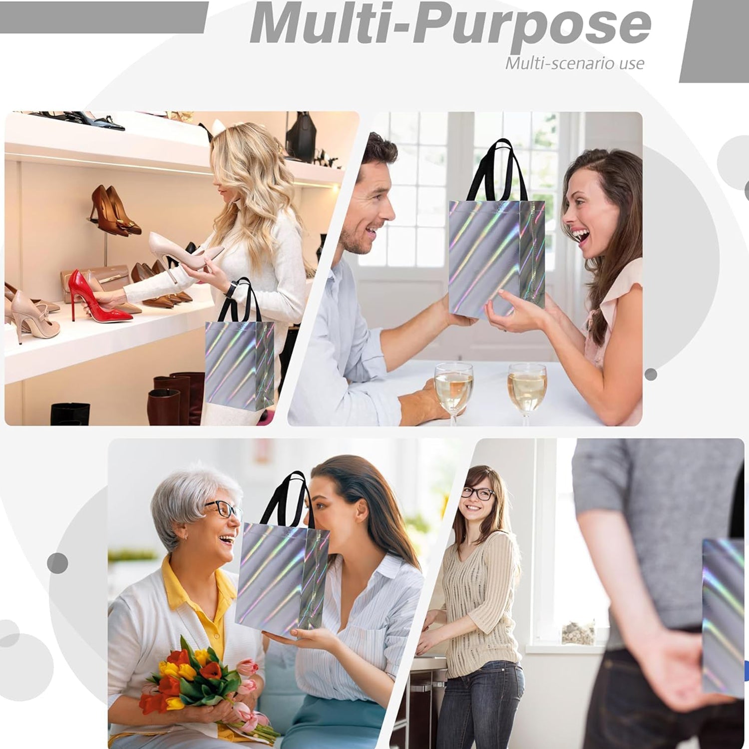 - What Do You Get: The package includes gift bags which is enough capacity for your daily use. Put your gift in a birthday bag for women and send your blessings, our large birthday gift bag bulk is a good choice.
